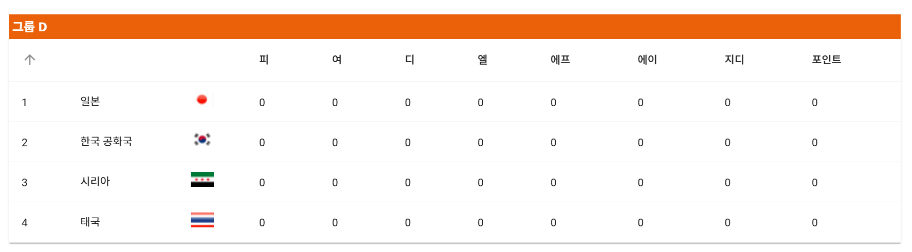 - 대한민국 조편성(D조): 대한민국, 일본, 태국, 시리아